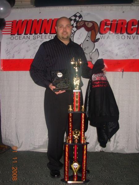San Jose's Jason Newton was officially honored as the Ocean Speedway/Wright One Construction 360 series Rookie of the Year on Jan. 11 2008 at the Ocean Speedway awards banquet at the famous "Coconut Grove" on the boardwalk at the beach in Santa Cruz, CA. Jason, in addition to being awarded the rookie of the year, was also awarded seventh place in the Wright One Construction 360 sprint series at Ocean Speedway.