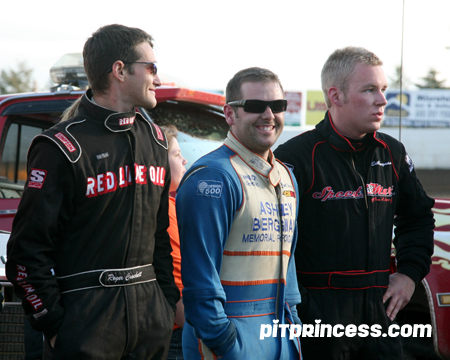 A-Main (30 laps): 1. Bergman, 2. Malsam, 3. Rutz, 4. Van Dam, 5. Crockett, 6. Schmelzle, 7. Barnes, 8. Olson, 9. Ridge, 10. Held, 11. Lemley, 12. Zeitler, 13. Peterson, 14. Melwicks, 15. Boyce, 16. Rice, 17. Pierce, 18. Cash, 19. Harris, 20. Allard. *-locked into the A-Main by placing in the top 16 positions in finishing and passing points.