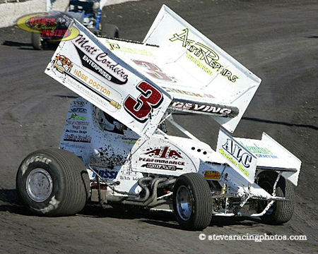 PENNGROVE, CA (6-9-08) – Last Saturday, Penngrove’s Alissa Geving was in competition at her hometown track of Petaluma Speedway when the Golden State Challenge Sprint Car Series came to town. Competing with a 360 cubic inch powered engine, Geving was merely maintaining her point lead in the Petaluma Speedway All Pro Series but she managed to charge from 18th to 12th place in the 30 lap feature event aboard the Pit Stop USA, Matt Cordeiro Enterprises, A1A Muffler sponsored #3x sprint car.