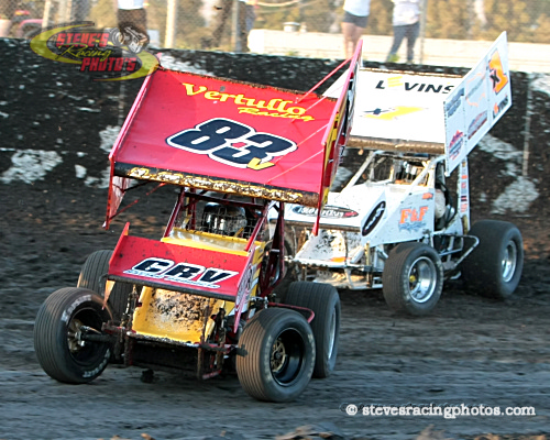Petaluma, CA. July 5, 2008. In a return visit of the Hoosier Tire California 360 Sprint Car Civil War Series to Petaluma Speedway, things proceeded in much the same manner for Kyle Larson as they did in round number two for the traveling series last April. Then, as well as Saturday night, Larson held third place in the main event only to lose the spot at the midpoint, but just like the previous Petaluma event, fought back to make a late race pass to take a podium finish.