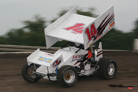 (Bill W) October 14, 2009 – Wayne Johnson had the FattFro #14AJ clicking well last weekend, but a tip-over and a tough heat draw amongst the 71 cars entered put a bit of a damper on things at the Cowtown Speedway. This weekend, the Knoxville, Iowa sprint car driver will stay in the Dallas area with the Lucas Oil ASCS National Series in two-day action at the Devil's Bowl Speedway in Mesquite, Texas.