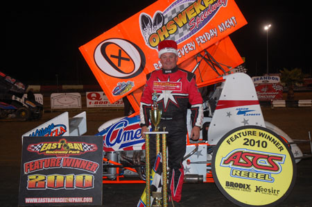 (Bill W) March 3, 2010 – When the dust settled on East Bay Raceway Park last Saturday night, it was Wayne Johnson who was crowned at the Ronald Laney Memorial "King of the 360's! The win paid him a cool $14,500, as he took over the lead with two laps to go in Glenn Styres #0x. The next step comes this weekend in ASCS-Gulf South action in south Texas as he has secured a ride n the Channing Zierolf Motorsports #c41 for events on Friday and Saturday.