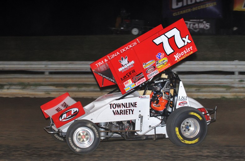 (Bill W) June 30, 2010 – Wayne Johnson turned in two more sensational performances making it three for three in top five finishes since putting together his #77x race team with his wife, Erin. Another second place finish (from 14th) at Knoxville Raceway on Saturday, was followed by a strong fifth place showing with the World of Outlaws last night in Sedalia, Missouri. This weekend, plans are to race at Knoxville only as he continues to try secure more partnerships or a solid full-time ride.