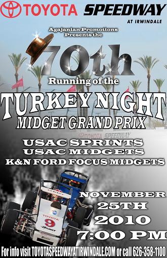 Irwindale, California - - Tickets for the Speedway's annual Thanksgiving Night Grand Prix event on Thursday, November 25 are on sale this week at half-off.