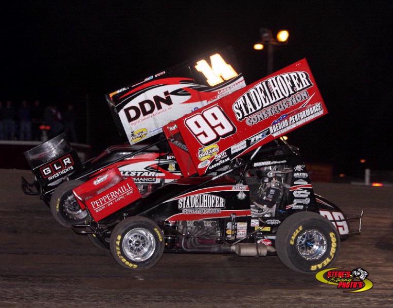Larson’s first run of the new season in the Stadelhofer Construction/Peppermill Casino #99 got off to a promising start when he stopped the clocks eighth quick of the 38 cars assembled on a surprisingly dry surface. A third place finish in the fourth heat locked Larson into the night’s 35 lap headline event. With several slower qualifiers taking advantage of front row starts in the heat races and advancing to the dash that grids the first five rows of the main event, Larson found himself starting 15th.