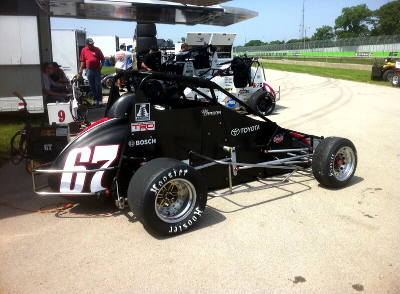 In the USAC Mopar National Midget division Larson drove the Kunz Motorsports/Toyota Racing Development mount to ninth quick time. Over the course of the 25 lap event Larson coped with a race long loose condition and salvage a 10th place finish as Darren Hagen drove from ninth to win the feature.