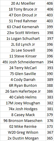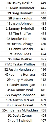 The ten drivers opting for the first five rows of the B main are (Danny Lasoski was the only driver eligible for the B, opting to start over on Friday)…