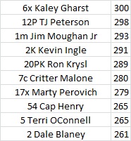 Since they made an attempt at hot laps, they are essentially credited with being there and awarded points based on "finishes" for each event. There were only 48 cars on Wed., so Henry got credit for 48th time trial points, 10th heat points, and 8th C-Main points. There were 50 cars on Thurs. O'Connell drew a lower number and would have gone out to time trial first, so he received 49th time trial points while Blaney received 50th. Both received 10th heat points. Because he was awarded 49th, O'Connell received 9th C-Main points while Blaney received 10th. That's why the points aren't equal for the 3 cars that scratched for the night in qualifying.