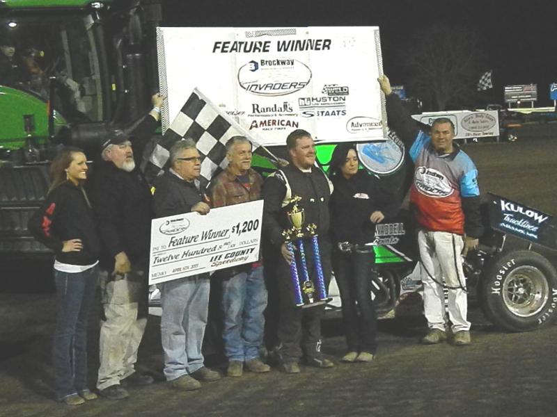 (Bill W) April 6, 2013 – For the second time in as many events with the Brockway Mechanical & Roofing Sprint Invaders, a driver produced a clean sweep on the evening. This time, it was Russ Hall's turn to win his heat, the Dash and the 25-lap feature event. It was the Pleasant Hill, Iowa driver's second career feature win with the Sprint Invaders.