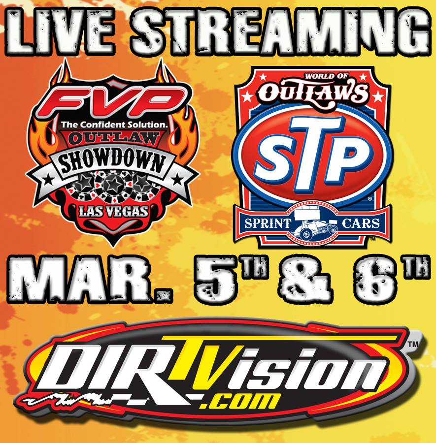 WATCH LIVE AT DIRTVISION.COM. The World of Outlaws STP Sprint Cars are back in action this week in Las Vegas as they kick off their six week West Coast swing. With only three races under their belts, the Outlaws are more than ready to get back in the seat. If you’re not able to be out in Vegas for what is sure to be an incredible two-day show, DIRTVision.com is bringing fans the opportunity to see it all unfold from the comfort of their own home.