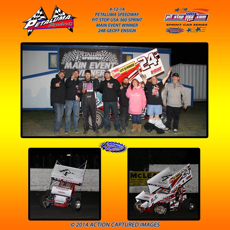 Next up for Ensign, as he’s juggling his schedule, is a possible trip to Chico or Watsonville this Friday night, followed by Round #2 of the PitStopUSA Sprint Car Series back at Petaluma Speedway on Saturday. Stay tuned to his Twitter feed @ensignmotorspts for updates.