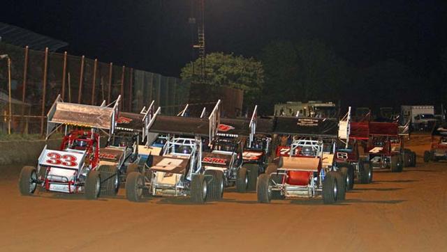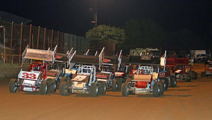 OCRS sprint cars saluting the fans of Oklahoma Sports Park. Mike Howard Photo