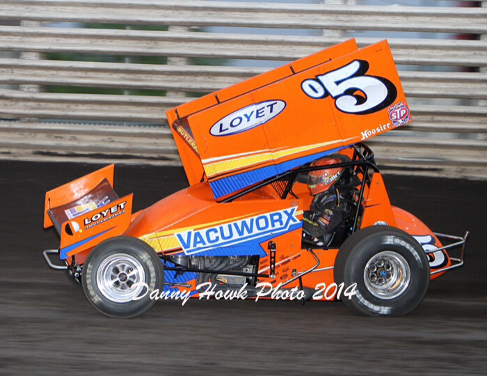 (Bill W) May 27, 2014 – A charge from 19th to tenth anywhere is an accomplishment for a sprint car driver. For a driver doing it in the stout weekly 410 field at Knoxville Raceway, it’s something to hang your hat on. Brad Loyet and the Vacuworx Global/Miller Truck Lines #o5 team did just that last Saturday night and they’ve built their confidence running at the “Sprint Car Capital of the World” the last three weeks. This weekend, they’ll be back in action with the Lucas Oil ASCS National series as they tackle Salina Speedway in Kansas on Friday, and Eagle Raceway in Nebraska on Saturday.