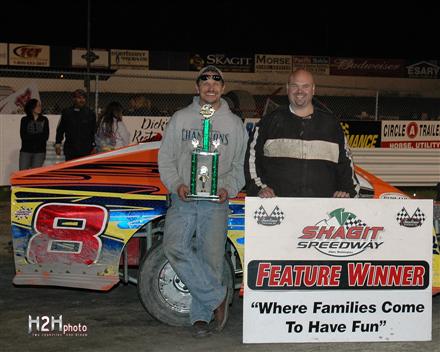 IMCA Modifieds made their only appearance of 2008 at Skagit Speedway presented by TC Transportation, with Jeff Foster of McClary, WA holding off Scott Dorie of St Helens, OR over the last two laps to take home the feature. 13 modifieds made the trek to the track from various parts of the Northwest, including Yakima, Montesano, Shelton, and Elma and put on a great show for the enthusiastic Skagit Speedway crowd. Heat race wins went to Dorie and Foster.