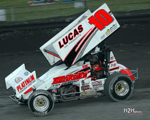Heat 4 (8 laps): 1. 9 Jayme Barnes, 2. 69 Brent Kaeding, 3. 26r Tayler Malsam, 4. 5sp Rick Fauver, 5. 18 Steve Kilcup, 6. 33 Derek Holmwood, 7. 5d Josh DeWitt, 8. 77 Mike Sather, 9. 12 Jared Ridge, 10. 44h Michael Harris, 11. 5x Chuck Ashe. First three finishers transfer to A-Main.