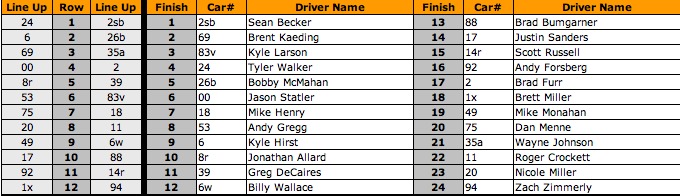 Becker wins from the front row, BK takes second from the third row and Kyle Larson takes third from the 12th starting position.