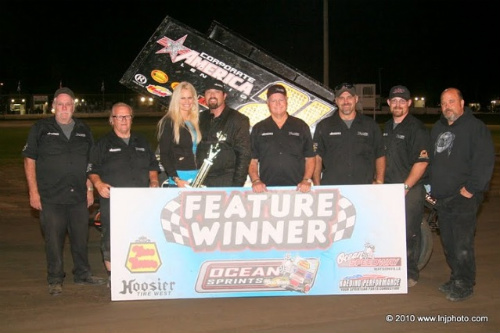 Watsonville, CA – (June 4, 2010) --- The weather was hot in Watsonville last Friday, but Easton's Tommy Tarlton made things even hotter as he scorched the competition during the evening's festivities at Ocean Speedway by going on to claim his second clean sweep of the year. Tarlton also swept the Golden State Challenge 410 Series event at Santa Maria Speedway on May 1, and he also drove to victory the previous night in the Taco Bravo Series on April 30, en route to sweep the entire racing weekend. With his victory, he has also become the only repeat winner this season in the Ocean Sprint Car Series.