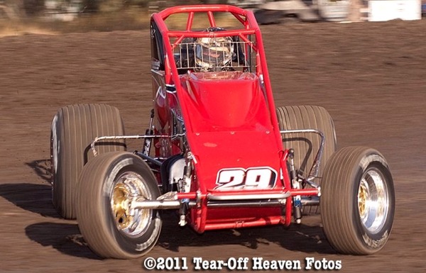 Driving Junior Bowman's #29 Buster & Ziggy Enterprises Maxim, Bud Kaeding had a memorable weekend. After winning the previous night at Watsonville in a winged 360 feature, Kaeding was sixth quick in time trials and second in his heat race. Restarting at the back after a lap two tangle, the 3-time USAC Silver Crown Champion delighted his fans by driving to the 30-lap feature win.
