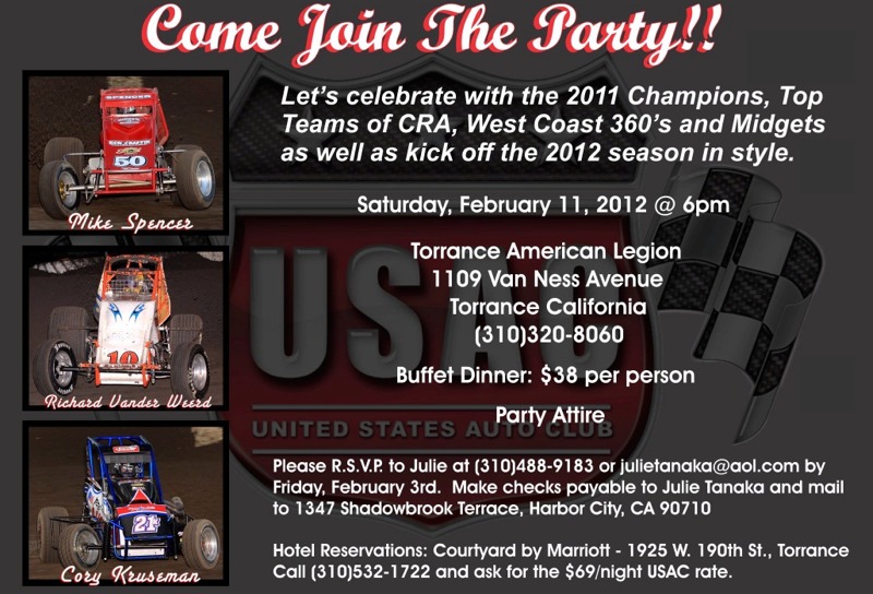 On Saturday, February 11th, there will be a celebration to salute the competitors, sponsors, families, friends, and fans of the Amsoil USAC/CRA Sprints, USAC West Coast 360 Sprints, and USAC Western Midgets.