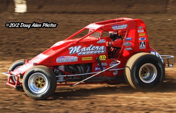 PERRIS, CA – JULY 5, 2012… Temecula's Mike Spencer continued his march to another Amsoil USAC/CRA Sprint Car title by winning the "Firecracker 30" at Perris Auto Speedway. The 4-time series champion passed Cory Kruseman on lap eleven and held off a hard charging Nic Faas to claim the $2500 Independence Day Classic. Rounding out the top-5 drivers were Faas, Brody Roa, Ryan Bernal, and Austin Williams.