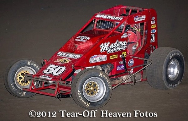 Driving Ron Chaffin's famed #50 Madera Produce / Grubstake Mini Storage Maxim, the Temecula driver qualified fourth quick on the night and ran third in his heat race. Starting sixth in the main event, Spencer steadily made his way forward as Schank, Roa, and Ryan Bernal waged a furious battle for the lead. Once in command of the main event, Spencer ran away from the field to claim his thirty-first career USAC/CRA victory.