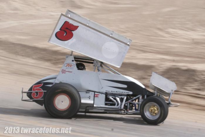 Aaron Gustin wheels his sprinter through turn 3 during playday at RTF Speedway on April 6, 2013