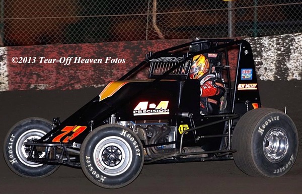 TULARE, CA – APRIL 21, 2013... After winning Friday’s USAC Western Classic race at Watsonville, Ryan Bernal of Hollister claimed Tulare’s USAC West Coast feature on Saturday. Starting fifth and taking the lead from Markus Niemela on lap sixteen, Bernal fought off repeated challenges by Danny Faria Jr. and Niemela for his series leading twelfth victory and third of the campaign. Richard Vander Weerd, Niemela, Marty Hawkins, and Rusty Carlile followed Ryan to the checkered flags.