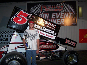 PETALUMA, CA (5/9/09) – When it comes to racing sprint cars, Bradley Terrell has many dedicated fans and one of his biggest supporters is his mother, Kim. Saturday night Terrell paid tribute to his biggest fan in fine fashion, winning his second feature event of the season on the eve of Mother’s Day in the Petaluma Speedway All Pro Sprint Car Series.