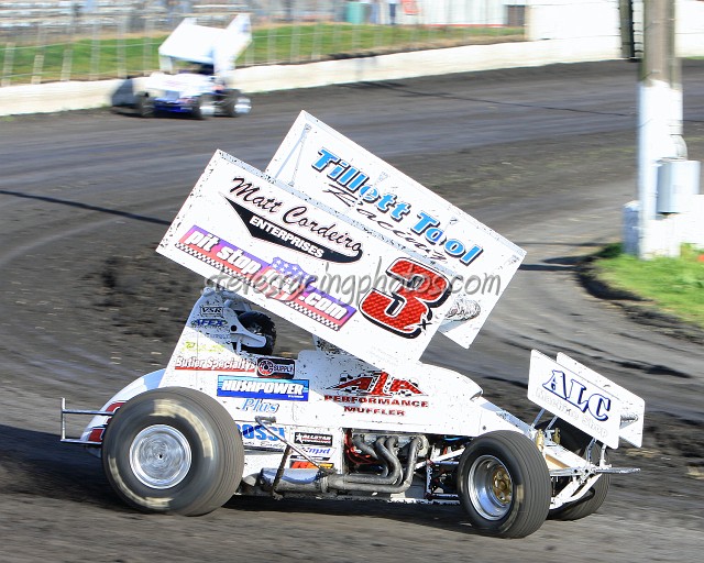 Geving’s car was no exception when it came to being tossed around during Saturday night’s mechanical rodeo. The soon to be Ursuline High School Graduate held on to the reigns of her Tillet Tool Pit Stop USA, Matt Cordeiro Enterprises, #3x Maxim Sprint Car long enough in qualifying to earn the 10th position with a 13:363 second lap. Her speed during qualifying reached 99.040 miles per hour, according to the AMB electronic scoring system.
