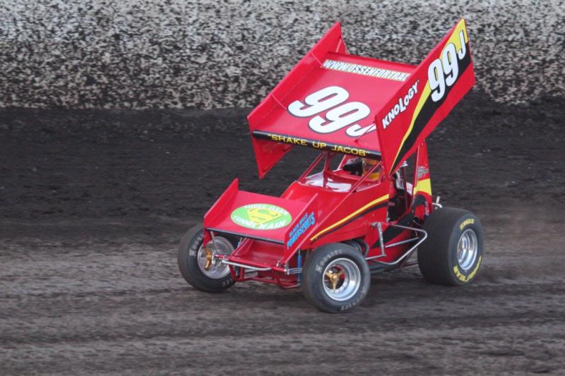 The "Mount Rushmore" driver made his way to Rapid Speedway in Rock Rapids, Iowa, on Friday evening where he put his Knology #99J Maxim chassis to the test. "It was weird. The track was different than I expected. When I got to the corner I was turning twice," he said of his hot laps. Jacob started seventh in his heat. "After our run in hot laps, we figured out what we thought we'd need for the rest of the night. The car felt great and we had a good run up to fifth. I think if we would have had a couple more laps, we could have made a couple more passes."