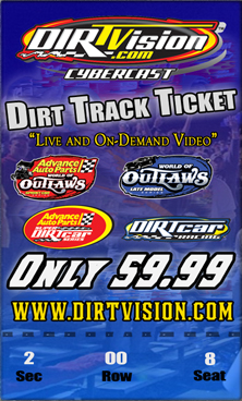 Users can catch all the action in 2008 by purchasing the DIRT Track Ticket yearly subscription. For only $59.99, users can watch all the LIVE VIDEO broadcasts on DIRTVision.com. The yearly DIRT Track Ticket subscription includes all Pay Per View events.