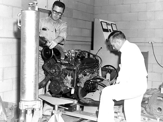 Moroso, Cosworth, Manley, Brodex, Mondello, Iskenderian, Brownfield, Carillo." "Assembling one of the monsters takes 60 man-hours, with a