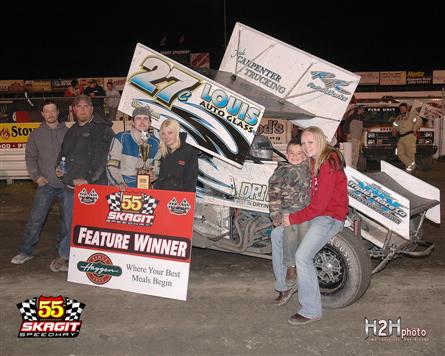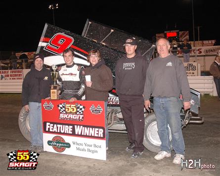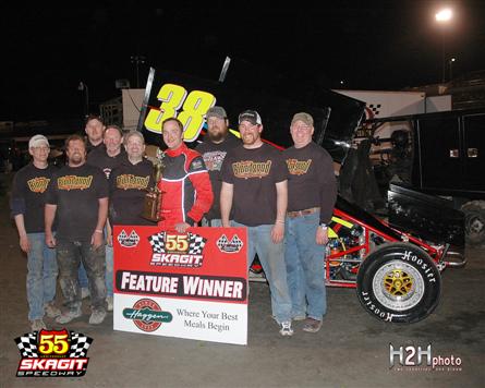Alger, WA - The question was posed to Jason Bloodgood in victory lane: if someone had told you before the night started that in a field with former WoO stars Shane Stewart & Jason Solwold and Nascar Craftsmen Truck Rookie Tayler Malsam you would lead every lap of the Associated Asphalt 410 main, what would you say? "I would have told you you're crazy" exclaimed Bloodgood in victory lane after scoring his first career 410 win in the Big John Motorsports #38 J&J on Haggen Food & Pharmacy Night at Skagit Speedway. Bloodgood got a scare on the final restart on lap 22 when Eric Fisher in the J&R Paving #59 XXX showed him a wheel on the inside of turn two and actually edged ahead of him for a second. Bloodgood didn't panic and roared back, reclaming his lead en route to the win. Colton Heath ended up second in the Sanford Tire #5x XXX. Third went to Malsam in the Rudeen Racing #26 Maxim. Heat races were won by Fisher and Travis Rutz in the Rutz Racing #8 XXX. Fast time was Stewart in the Jet City Equipment #7k A.R.T.