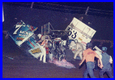 I was also in the turn 4 bleachers that night as usual. That was a Friday the 13th. Haud was in the 63 Hampshire car. He had to get the hook on that car himself as the tow truck driver was not going any where near it. Milan Garret was the other car involved. His own # 21 car which was rebuilt overnight at BKs shop and won the B main the next night. Milan was one of the first drivers that Marks and Keppler hired when they formed a team.