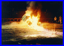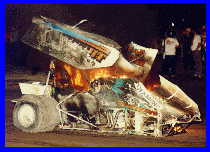ya i can remember the fire truck driving down the freeway and pulling onto the track just as they finely (after like 30 minuets )got the fire out with the water truck.and remember every body was trying to pull the car out of the flames and mike rolling on the ground to put himself out ---damn it was insane