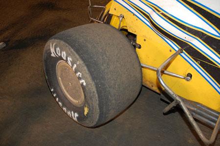Once in front, the veteran let loose. "I was like a rabbit running from a bear there!" says Wayne. "I probably used the tire up a little much just to get away from them. I didn't know how far I was in front, but they said it was about a straightaway." A look at the right rear after the race showed Wayne got everything out of it! The $7,000 victory was the first in 2008 for Wayne, who utilized a 410 power plant supplied by FattFro's Al Christoffer.