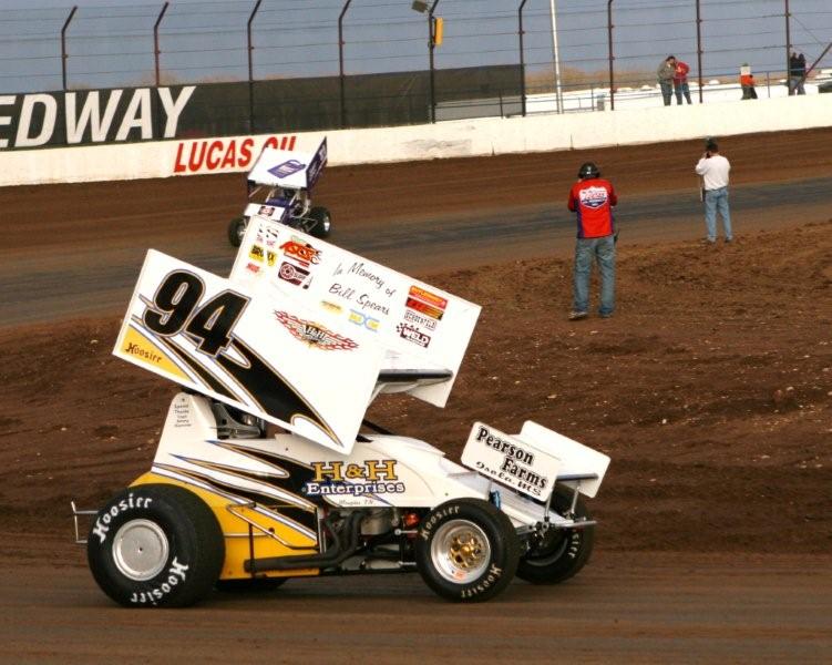 The Bad Draw Syndrome (BDS) may be catching up to the Oklahoma transplant. "It seems like we're starting in the back of everything, every time!" he laments. "We drew 62 out of 75 numbers, and that put us back in ninth to start the heat." Starting ninth with drivers like Wright and Brian Brown on the front row didn't bode well for him, but he did manage to climb to fourth by the checkers. Still it wasn't enough to transfer to the main event.