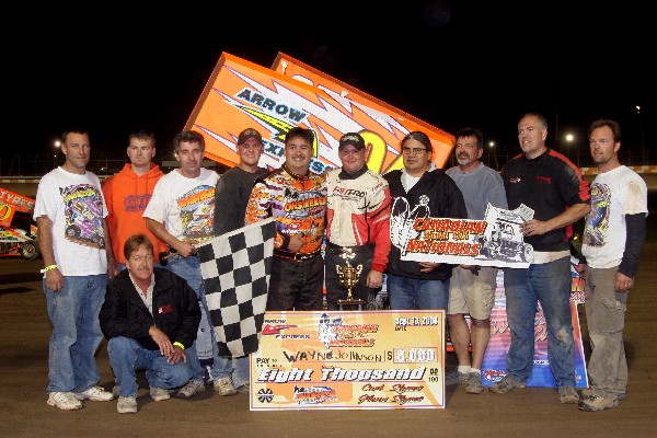 (Bill W) October 1, 2008 – Before last weekend, Wayne Johnson had never raced in Canada, but he came back to the States as the 4th Annual Canadian Sprint Car Nationals champion at the Ohsweken Speedway in Ontario! The Knoxville, Iowa resident had to work hard for the $8,000 win with 61 cars in the pits. This weekend, the 2008 360 Nationals champion be tackling the best 360 drivers in California as he heads to the 17th Annual Pacific Sprint Fall Nationals!